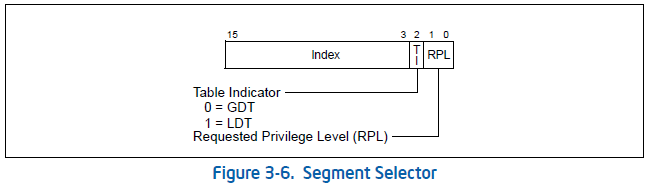 : 세그먼트 셀렉터의 0, 1 번째 비트.